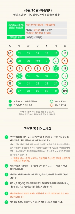 2025년 (9월/10월) 배송달력